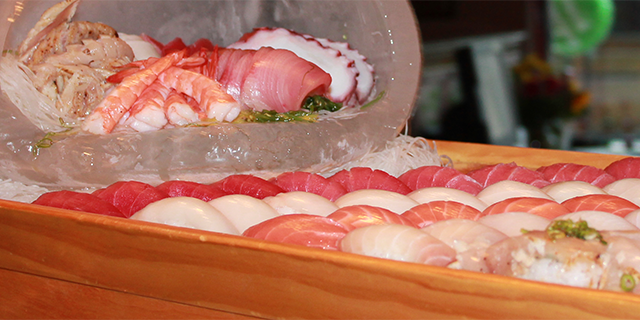 FOR FOUR-20 pieces of Nigiri, 20 pieces of sashimi, 4 any specialty roll.